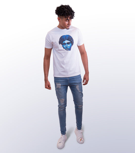 HEAD NO SHOULDERS BLUE - FRONT PRINT - WHITE T-SHIRT